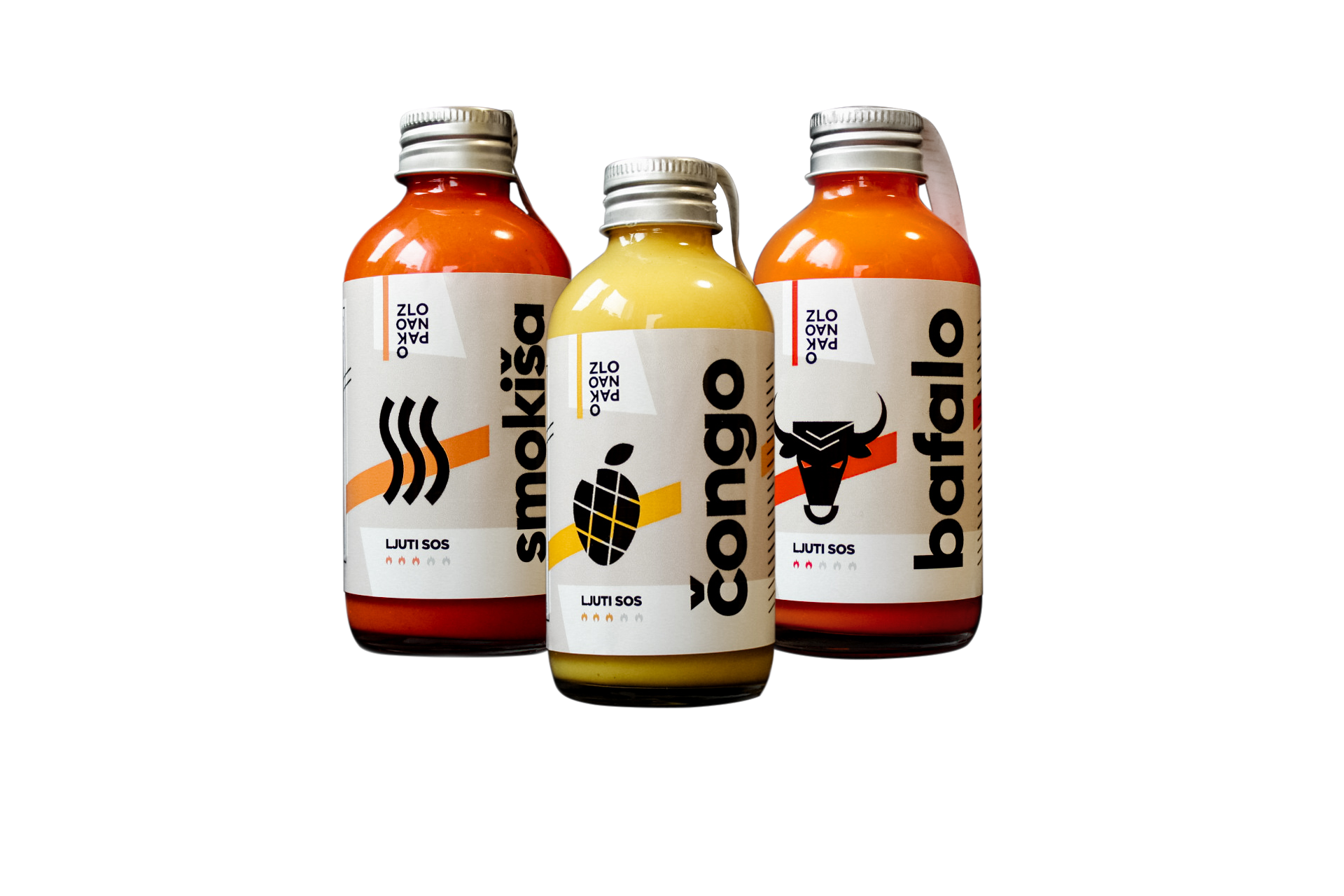 Tri karaktera za tri raspoloženja. Smokiša za dimljeni šmek roštilja. Čongo za voćnu eksploziju i energiju. Bafalo za kremasti, puterasti užitak uz krilca.